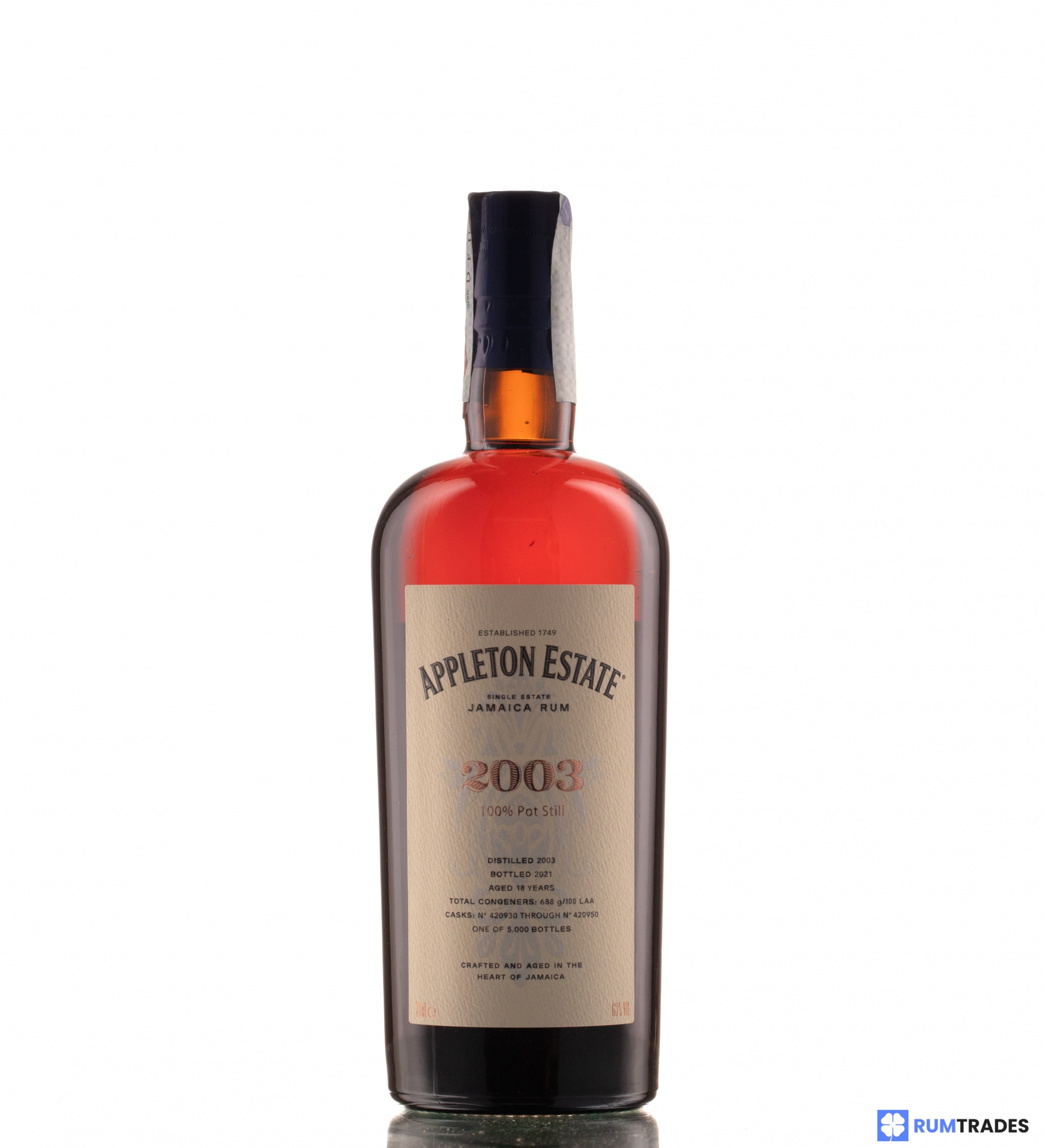 Distilled in 2003 on the Forsyth pot still, aged in Jamaica for 18 years and bottled in 2021.
