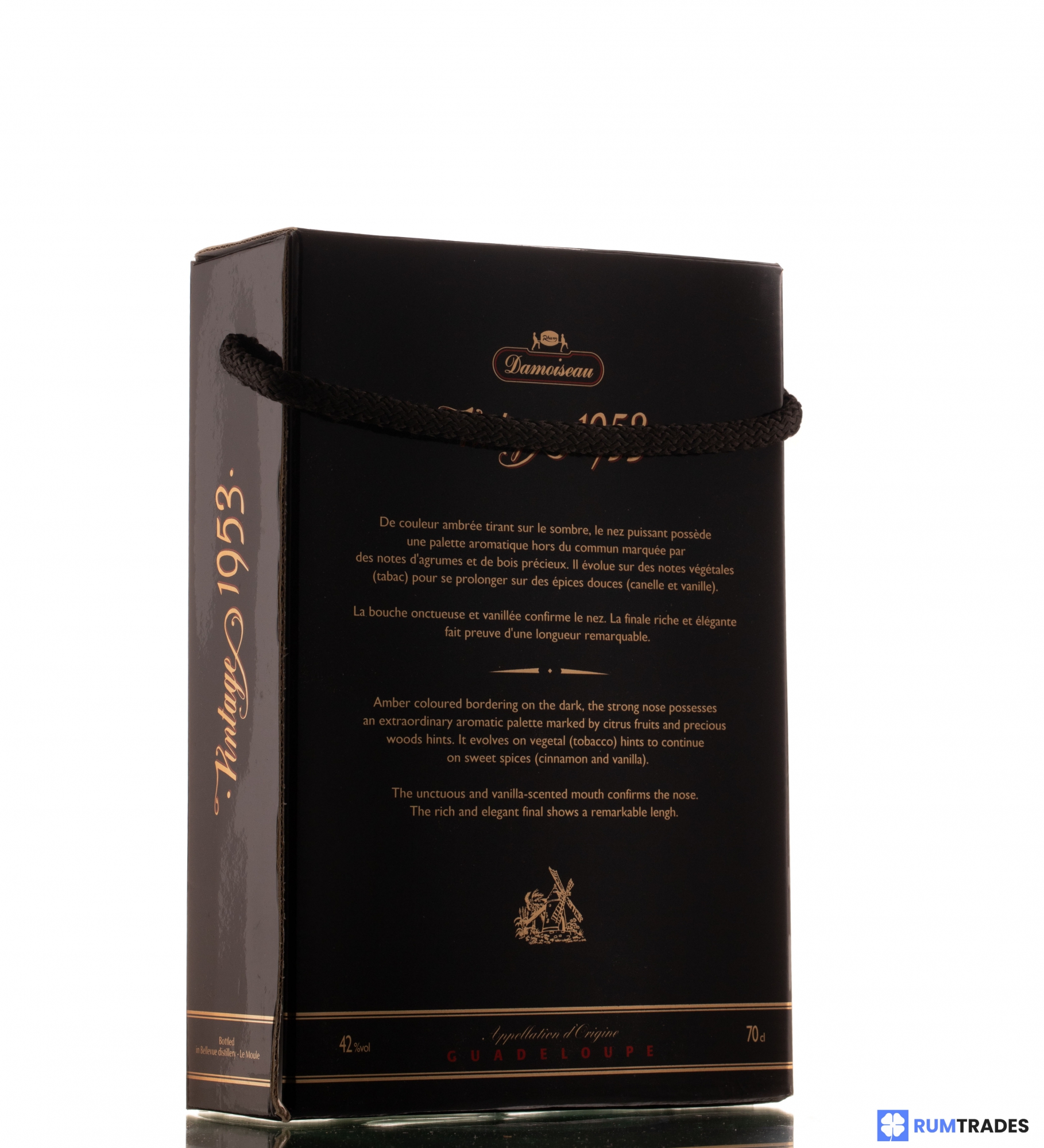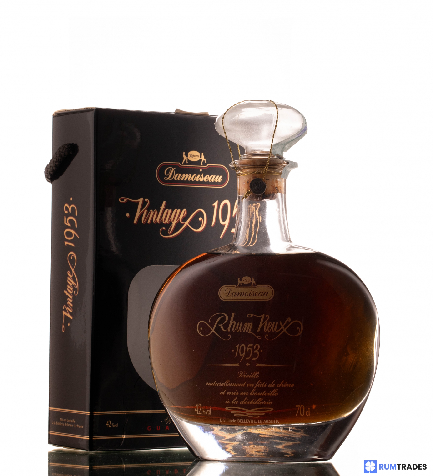 This Damoiseau was distilled in 1953 from pure sugar-cane juice and bottled at the distillery, after 31 years of aging in oak barrels.