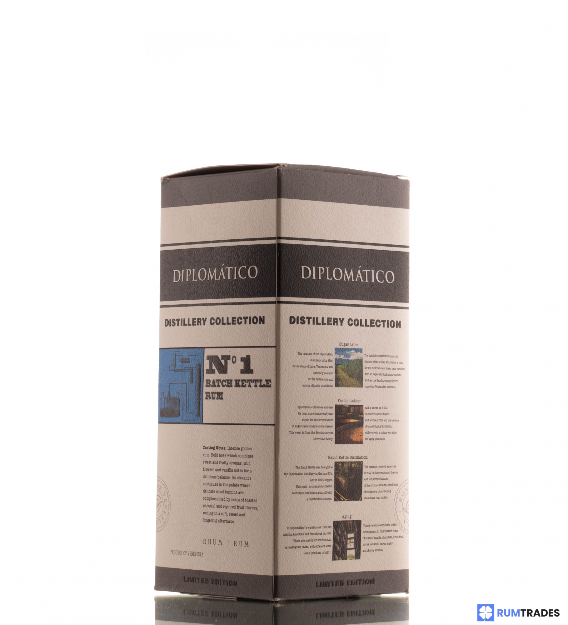 The origins of Diplomatico distillery, date back to 1959, when Licorerías Unidas S.A. (LUSA) was founded. It was controlled by Canadian giant and main shareholder Seagram’s International, one of the largest spirits companies in the world, who took full control of the distillery in 1992. 10 years later, in 2002, the distillery was sold to a group of Venezuelan entrepreneurs led by José R. Ballesteros Melendez, changing its name to Destilerías Unidas S.A. (DUSA). The production starts from 10 different sugarcane strains even though three varieties, Romana, Venezuela and Canal Point are the mostly used. The distillation takes place in different alembics among which multi-column still, Batch Kettle and Pot still.