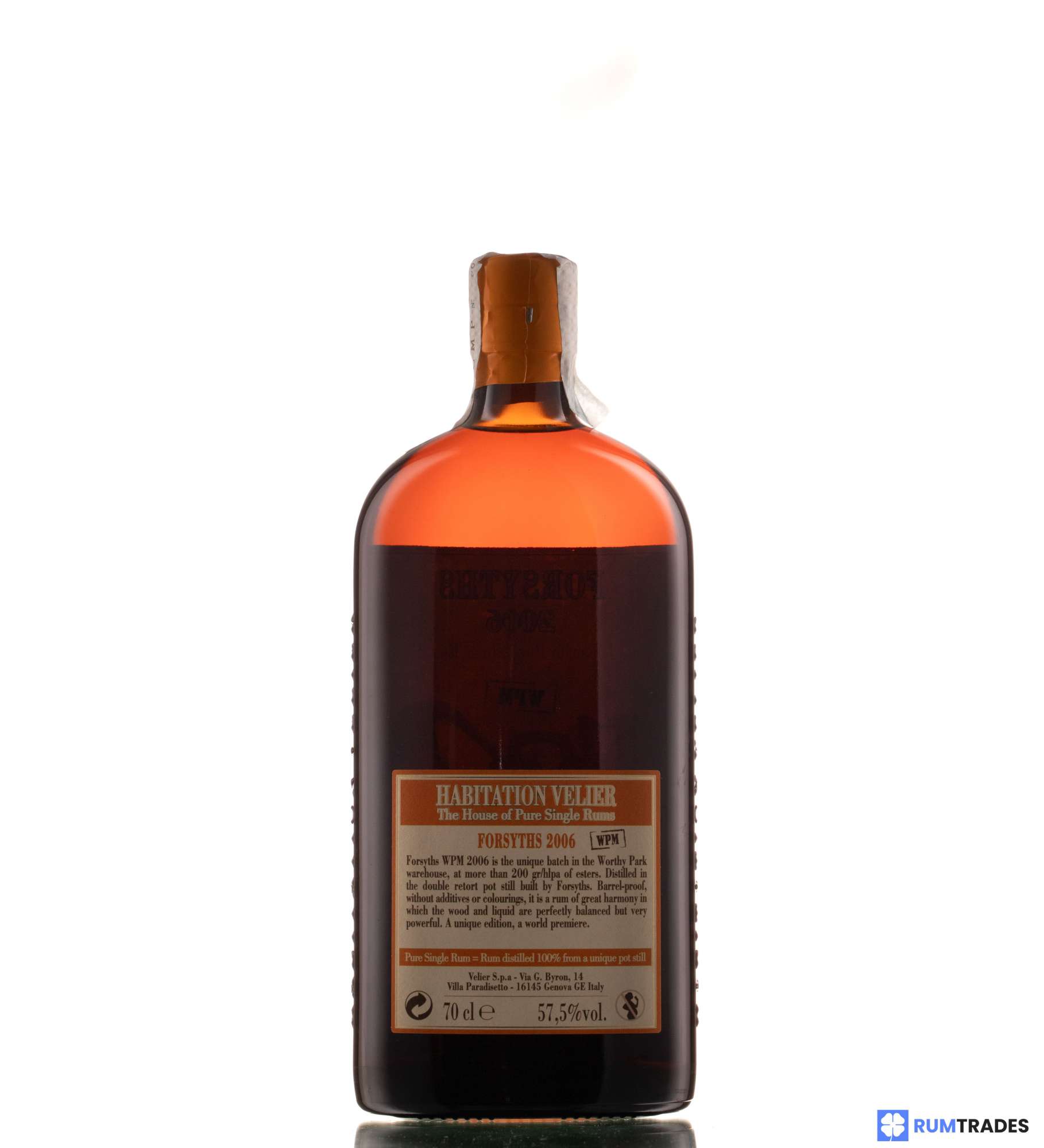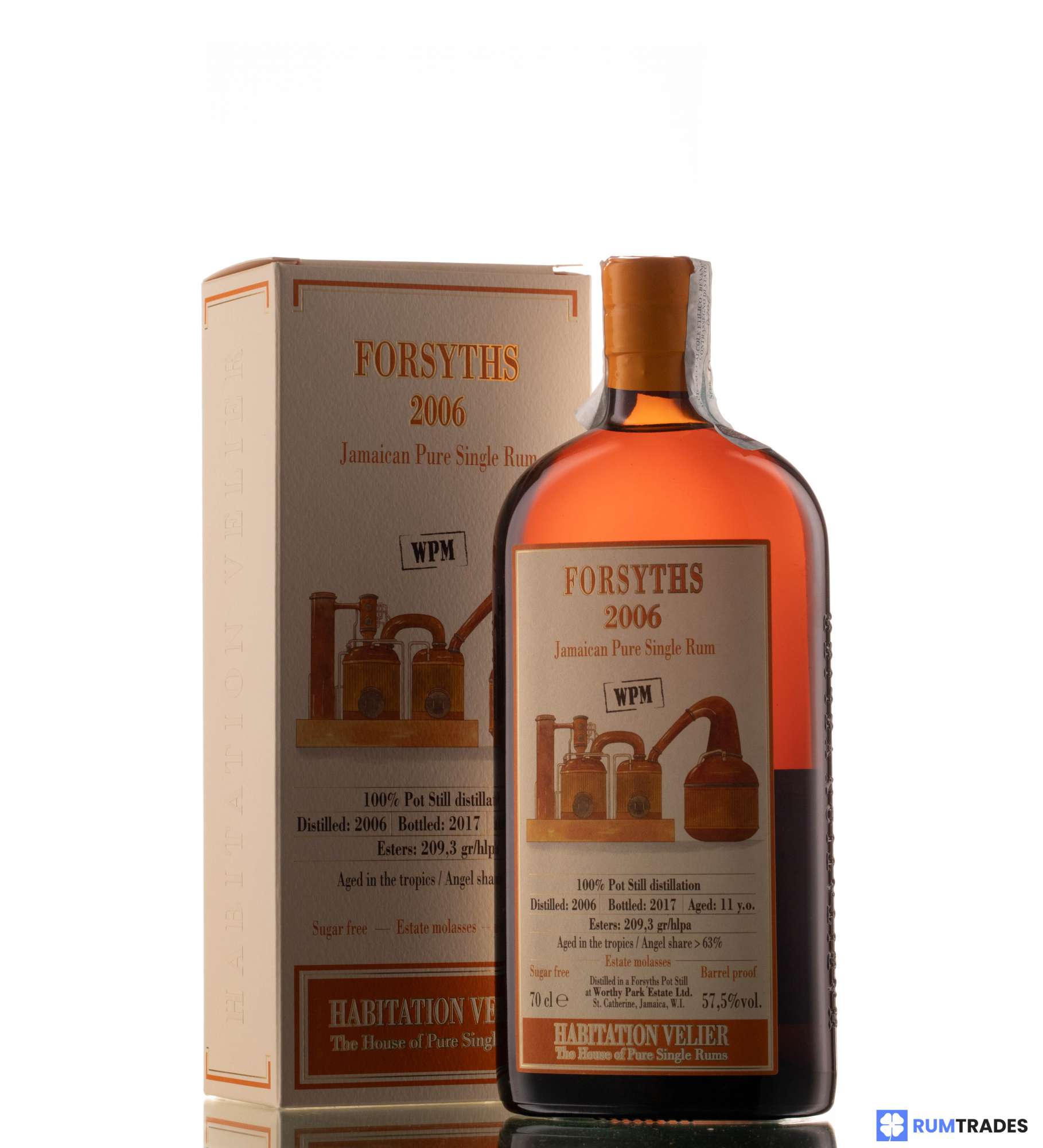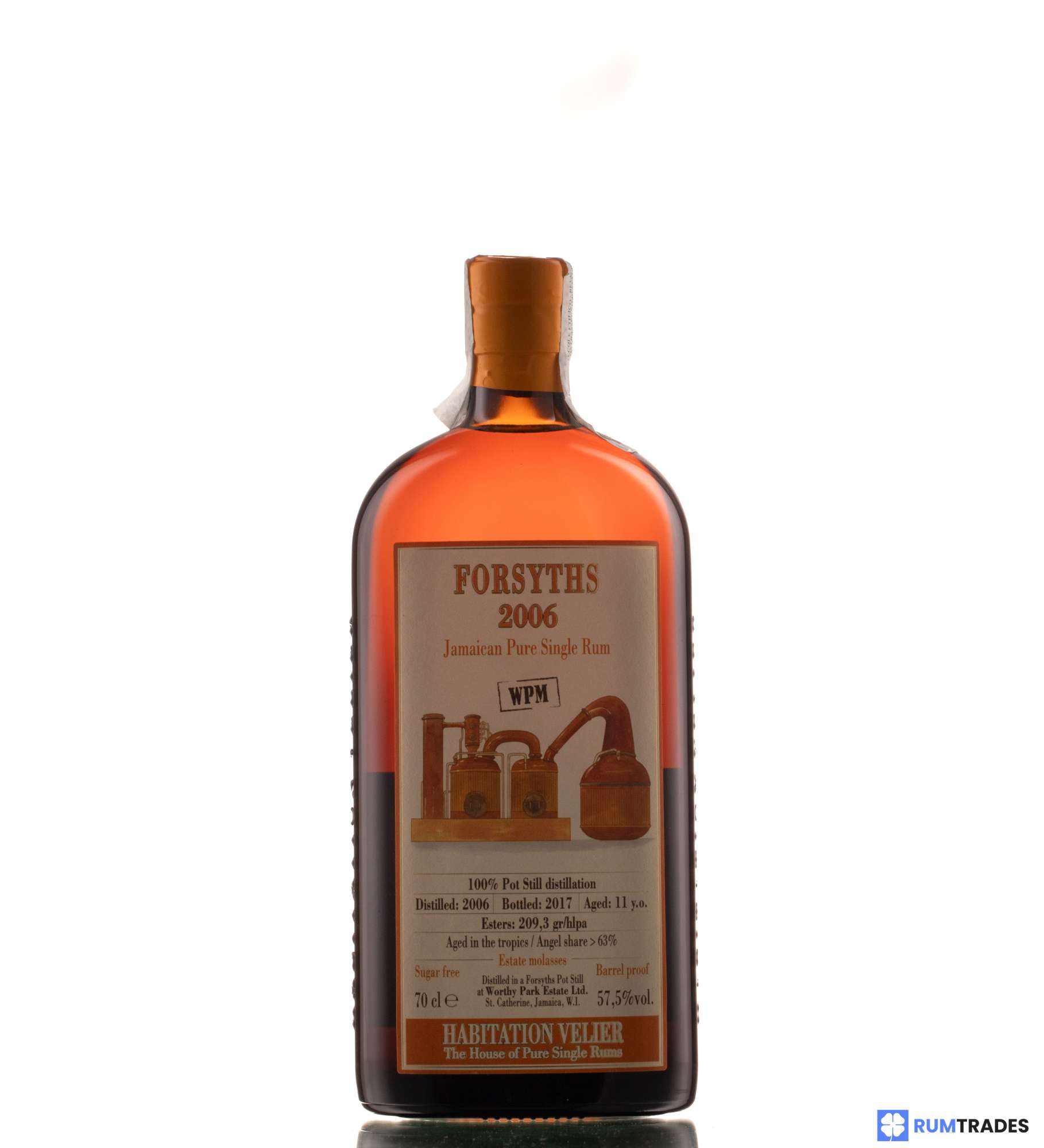 The **Forsyths WPM 2006 11 Years Old 57.5% Habitation Velier** is not just a rum; it's a testament to the rich, authentic tradition of Jamaican rum production. Distilled by the renowned **Worthy Park**—a name synonymous with excellence and tradition in Jamaican rum—this particular expression is bottled by Velier, an Italian company famous for its discerning curation of the finest rums.