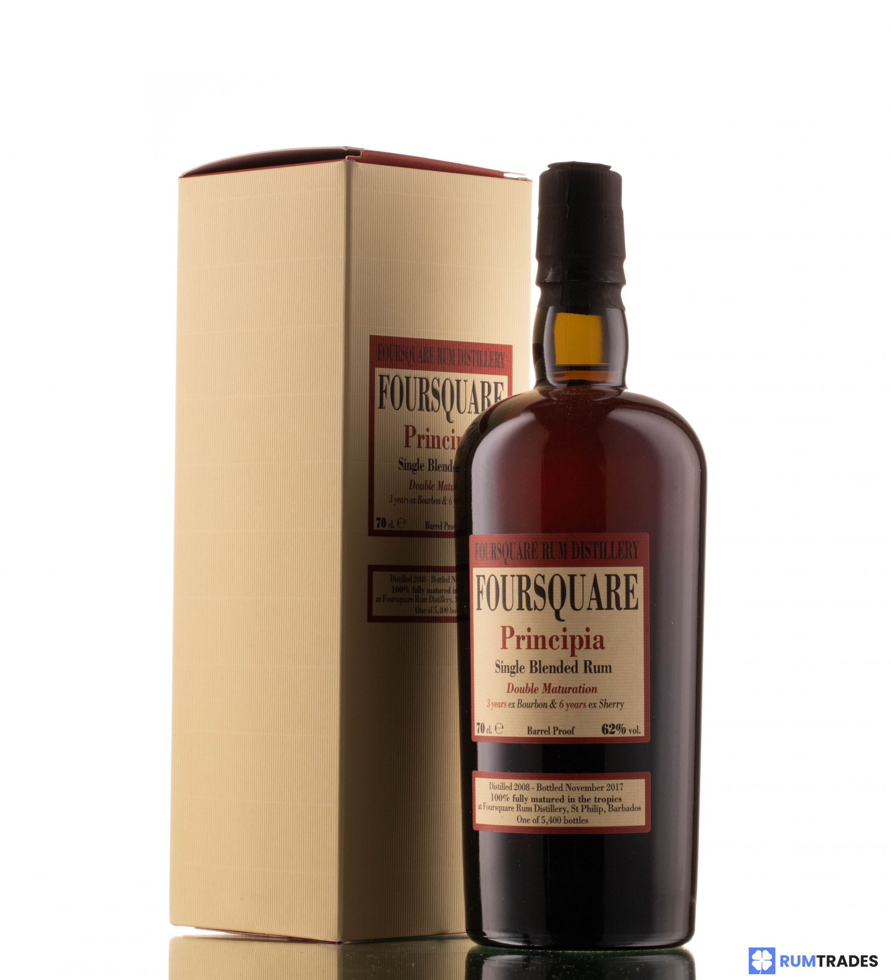 Foursquare Principia is a special release in collaboration with Velier. Fully tropically matured for 3 years in ex-Bourbon and 6 years in ex-Sherry, was bottled barrel proof in November 2017.