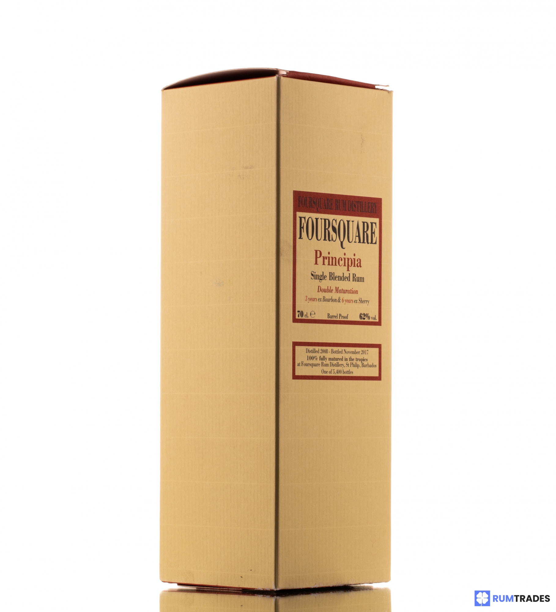 Foursquare Principia is a special release in collaboration with Velier. Fully tropically matured for 3 years in ex-Bourbon and 6 years in ex-Sherry, was bottled barrel proof in November 2017.
