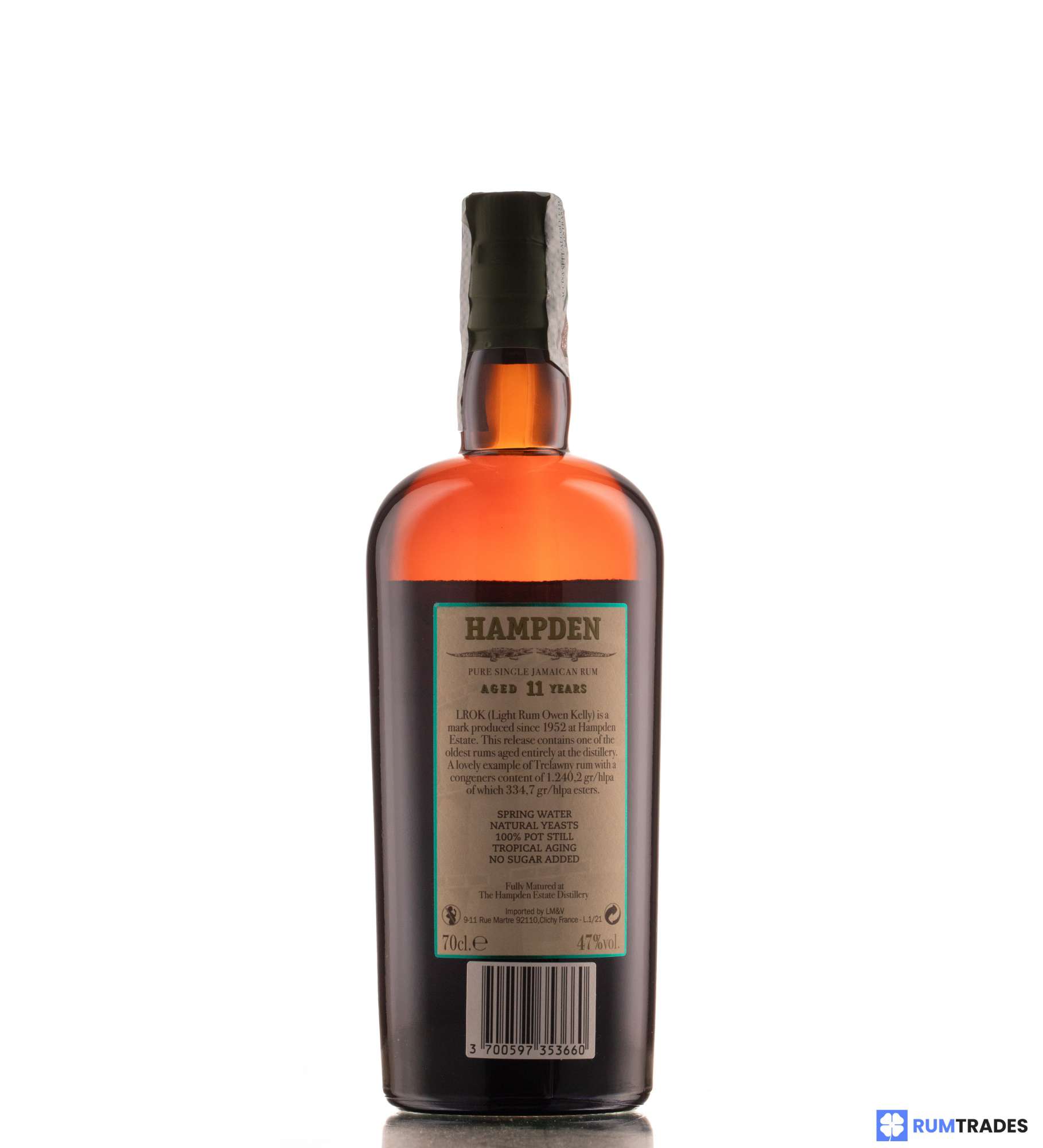 Distilled in 2010, aged for 11 years in tropics and bottled in 2021. The LROK mark (Light Rum Owen Kelly) has been produced by Hampden Estate since 1952.