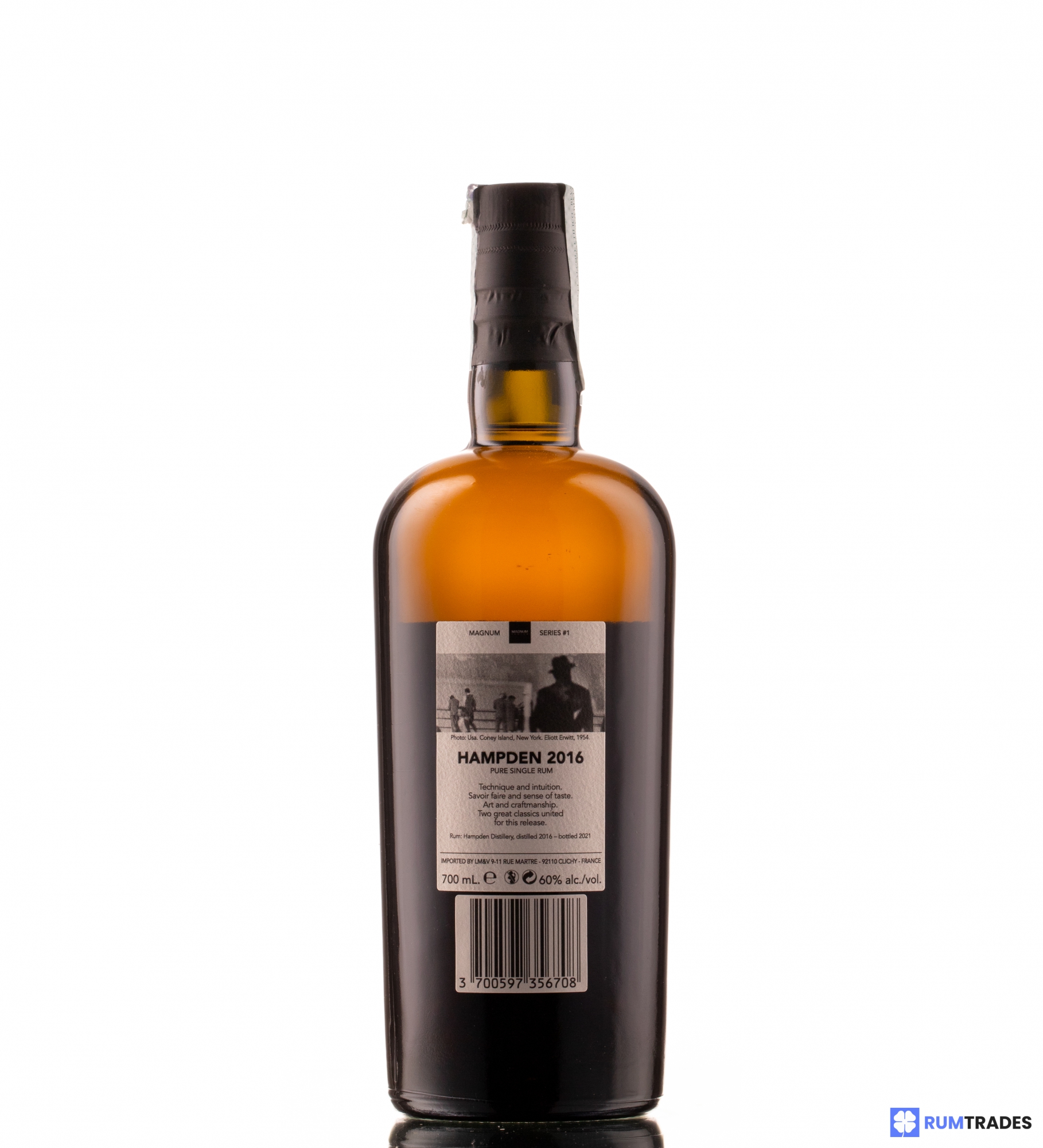 Distilled in 2016, aged for 5 years in Tropics and bottled in 2021, the LFCH mark identifies rum with an ester concentration at distillation of 500-600 gr/hlpa. This is the first edition of the Magnum Series, a special collaboration between Velier and the celebrated Magnum Photos agency. The photo on the label, is a work of world-famous photograper Elliott Erwitt, dated 1954, representing Coney Island, New York.