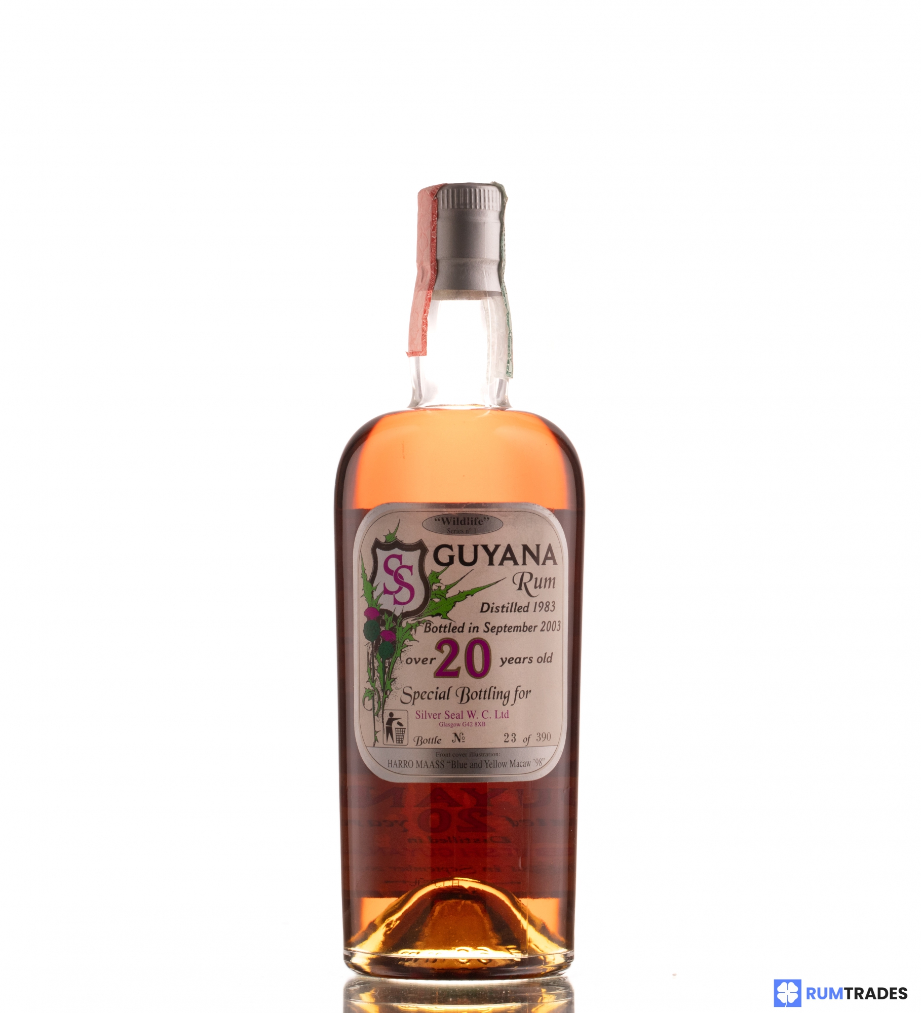 The Pure Guyana Rum 1983 20 Years Old 46% Silver Seal - Wildlife Series #1 is a carefully selected and masterfully aged rum that will captivate connoisseurs and collectors alike. Distilled in the year 1983 and bottled two decades later in 2003, this exceptional rum hails from the rich and diverse land of Guyana, renowned for producing some of the finest rums in the world.